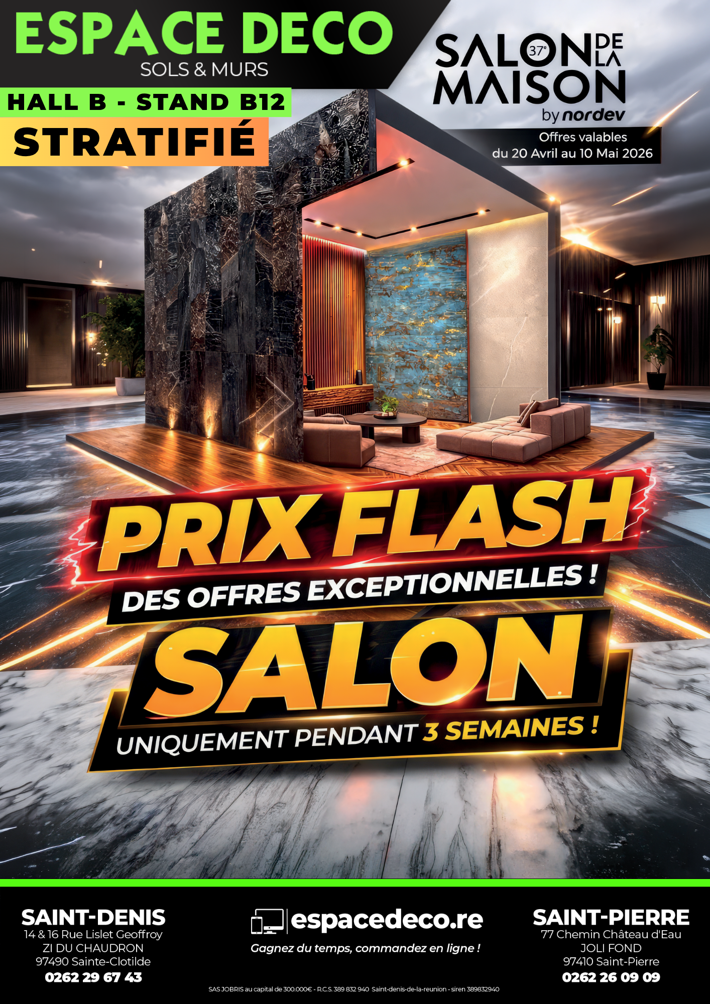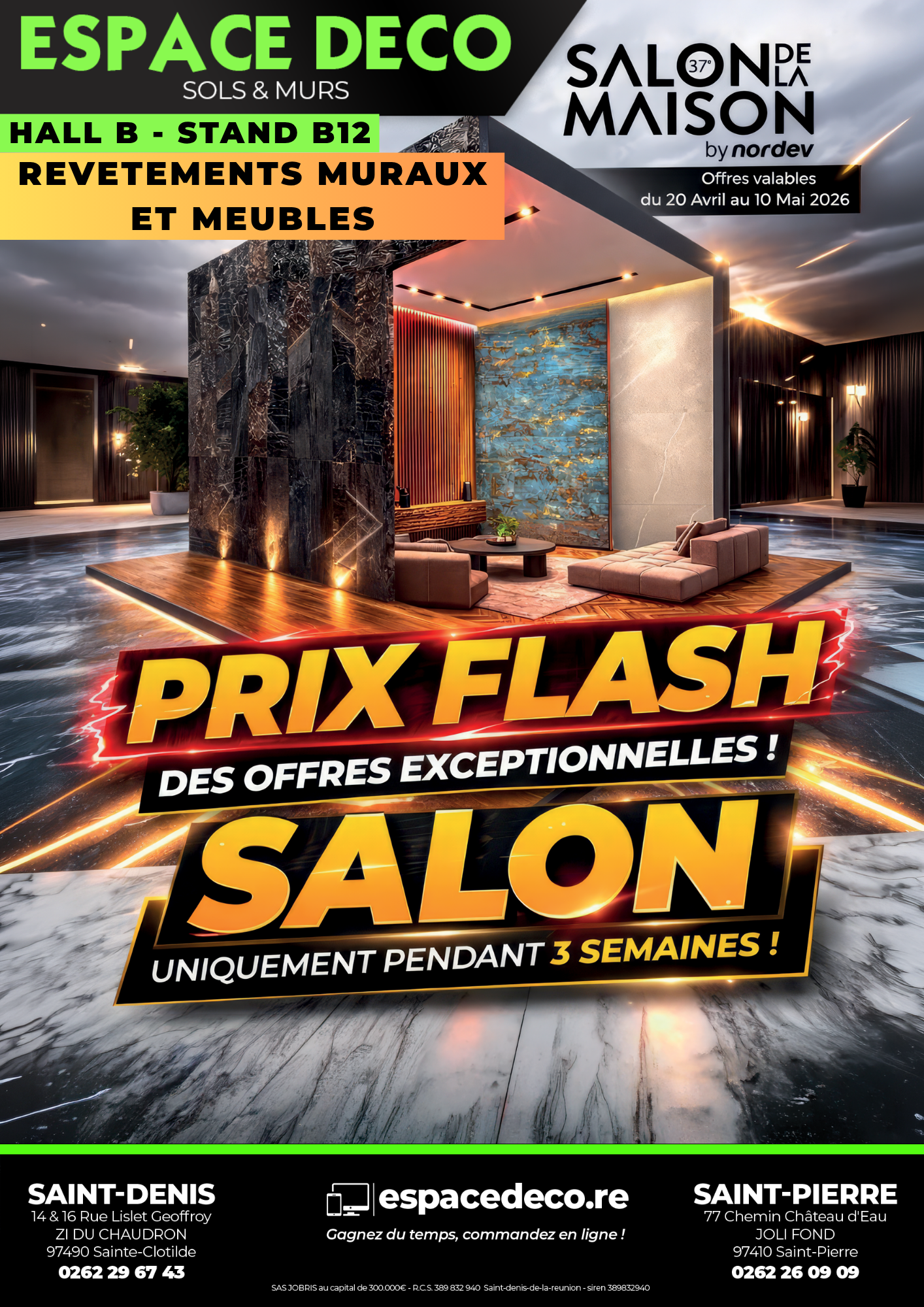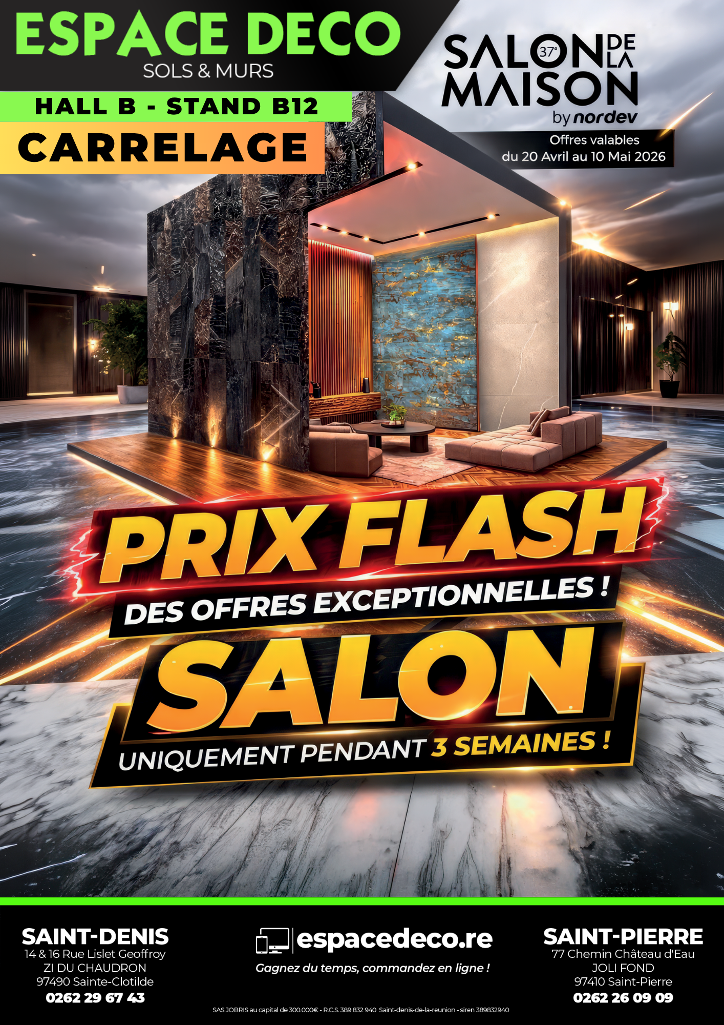 Carrelage à Saint-Pierre : découvrez Espace Déco ZI Joli Fond. 165 références, tendances 2026, paiement 4x sans frais. Le sud de La Réunion vous attend.