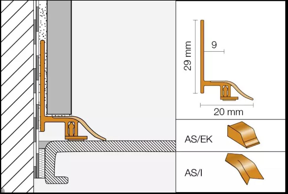 Le profilé DILEX AS est un profilé de raccordement souple à deux composants, conçu pour relier les revêtements carrelés à des éléments fixes du bâtiment (baignoires, receveurs de douche, huisseries, plans de travail) tout en absorbant les mouvements. Il convient à des épaisseurs de revêtement variant de 4 à 10 mm.
