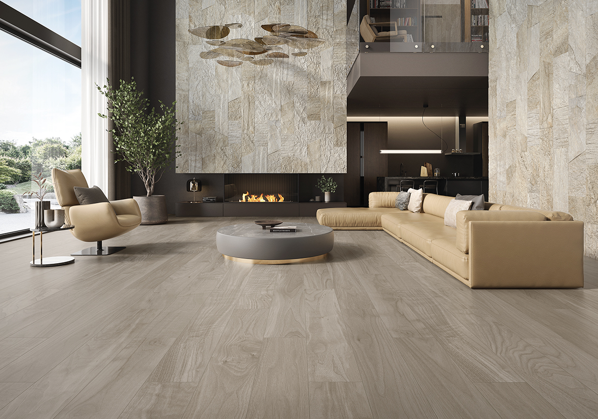 Le modèle Hardstone Nature de Bestile, au format 30 × 120 cm, est conçu comme un revêtement polyvalent pour sols et murs, capable de s’adapter aussi bien à des environnements intérieurs que des zones extérieures selon la version. Grâce à son grand format allongé, il offre un rendu épuré avec peu de joints visibles, ce qui contribue à une sensation d’espace et de continuité visuelle.