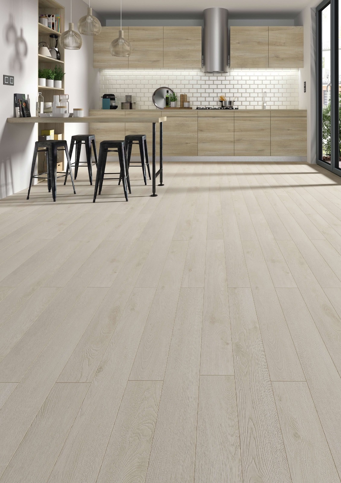Le Chêne Aïda 521 de la gamme Allure combine un veinage chêne finement travaillé avec une teinte claire et chaleureuse, parfaite pour agrandir visuellement les pièces et harmoniser meubles modernes ou classiques. Sa texture brossée accentue le relief du bois tout en offrant une surface agréable au toucher et peu réfléchissante. Conçu pour un usage résidentiel exigeant, il s’intègre aussi dans des projets commerciaux légers grâce à sa robustesse et son entretien simple : nettoyage courant à l’eau savonneuse douce, pas de cire nécessaire.