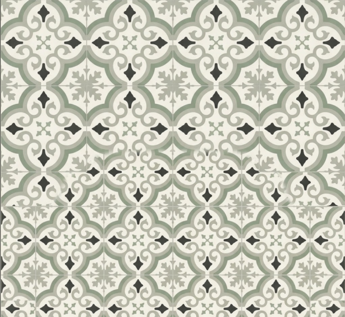 Décor : Une imitation de pierre naturelle ou de travertin très épuré. Le motif se présente sous la forme de dalles aux contours légèrement adoucis, créant un quadrillage discret qui évite l’aspect trop monotone des sols unis.