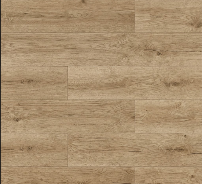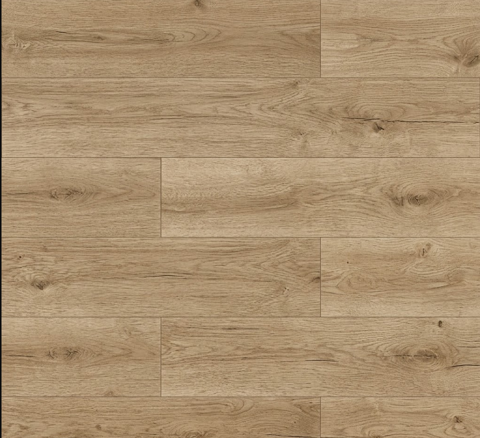 Décor : Une imitation de Chêne naturel en lames de largeur standard. Le motif « Cherbourg » se veut authentique mais sobre, avec un veinage délicat et peu de nœuds prononcés pour un rendu visuel fluide.