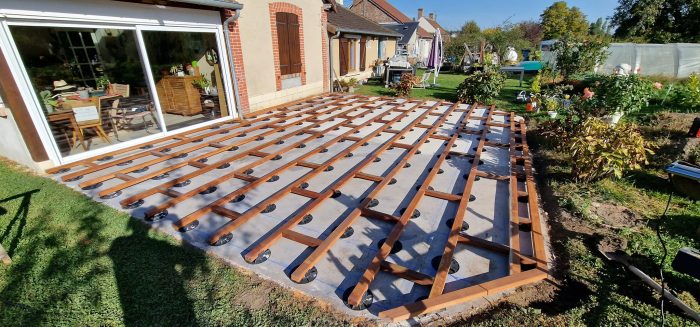 • Usage : structure porteuse pour terrasses en bambou, bois naturel ou composite