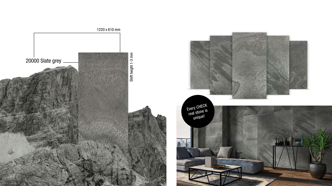 À la fois souple et extrêmement résistant, CHECK real stone ouvre le champ à une créativité sans limite : habillage mural, décoration intérieure raffinée, créations sur mesure… tout devient possible.