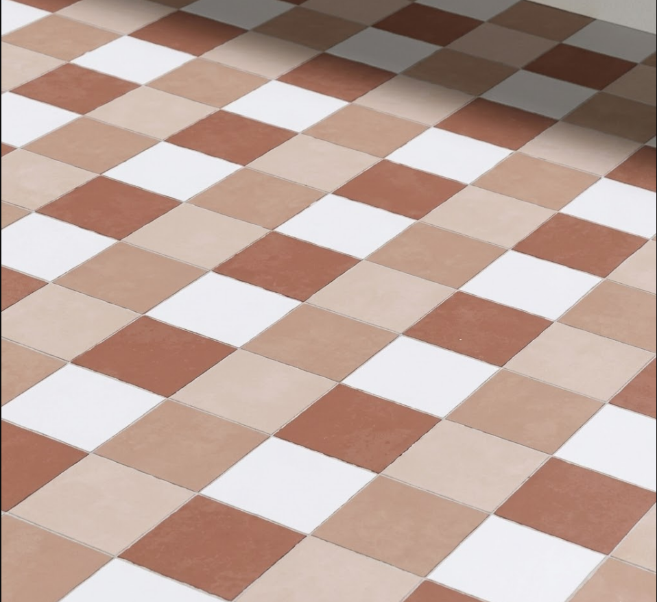 • Décor : Un motif de carreaux de ciment géométriques. Le dessin « Vichy » se compose de rosaces et de motifs floraux stylisés inscrits dans des dalles d’environ 20 x 20 cm. C’est un décor qui apporte du rythme et un cachet « ancien » immédiat.